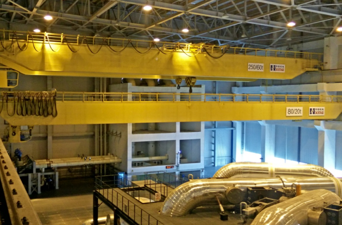 公司設計制造的所有核電廠配套用橋門機、吊車系消化吸收國內外先進技術,結合我公司常規產品的成熟技術,綜合核電產品更高的安全可靠性要求,遵照GB/T3811-2008《起重機設計規范》、GB/T14405-2011《通用橋式起重機》、NB/T20234-2013《 核電廠專用起重機設計準則》等標準開發出的核電專用系列產品,技術成熟,安全可靠,檢修便利,特別適合核電廠各個廠房內的設備的吊裝、搬運就位工作。公司首臺臺橋機為2006年研發、2007年投入生產的巴基斯坦恰希瑪核電75/20t吊車,公司首臺臺碼頭固定吊為2008年向三門核電提供的2臺450/125t-56m固定式橋機。近14年的發展,已向國內外眾多優質客戶提供近200臺核電吊車設備。目前制造過的跨度最大橋吊為450t-56m,起重量最大為900t固定吊。